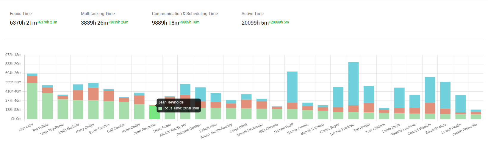 Finance teams can see how much time sales spends in CRM tools compared to admin work, or how engineering balances deep focus sessions versus multitasking across platforms.