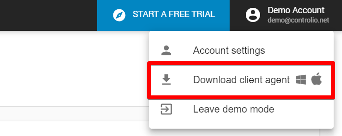 To get the Client Launcher, please Click on the Download client agent item from your account’s menu: