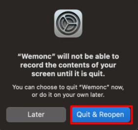 If the Client is up and running, you will need to quit it then reopen it to enable screen recording.