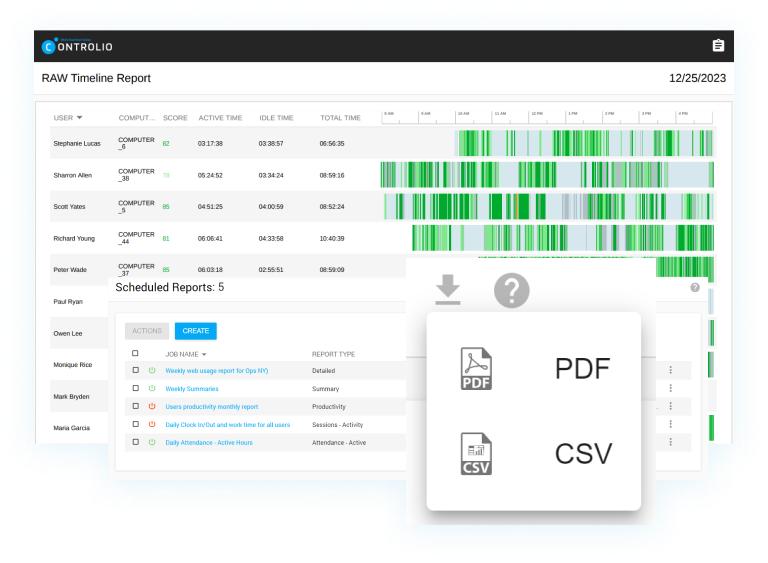 Avail of scheduled report delivery to share productivity summaries with employees, managers, or executives frequently