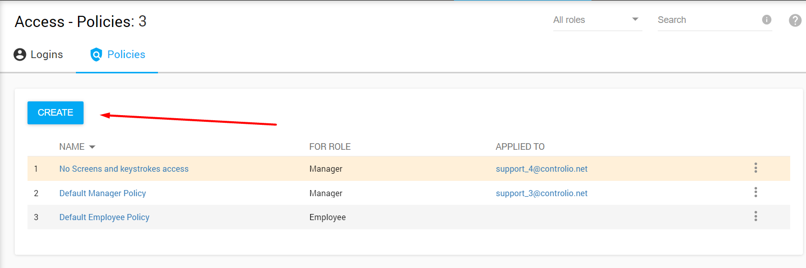 Policies are rules that define a set of manager’s/employee’s access permissions – to view reports, to edit categorization settings, and to view live streams or screen recordings.