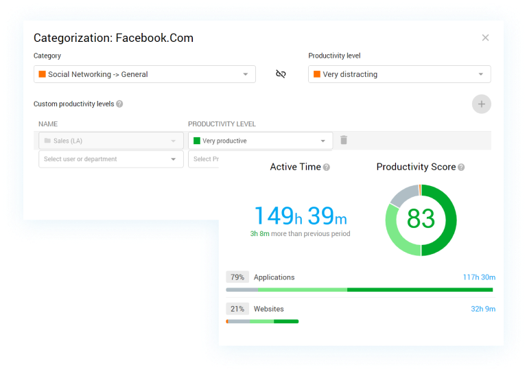 Manipulate productivity levels settings per employee/department for more precision