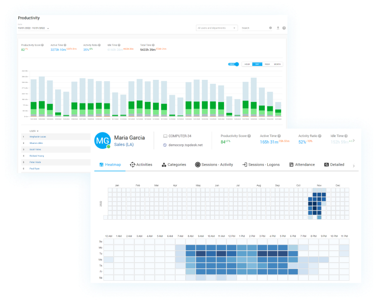 Explore activity heatmaps to get a better understanding of employees’ activity patterns