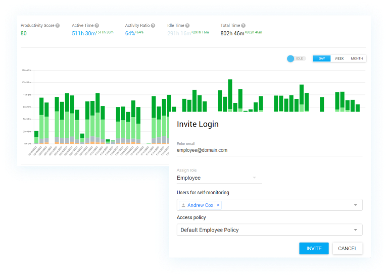 Use productivity and activity bars to measure employee overall performance