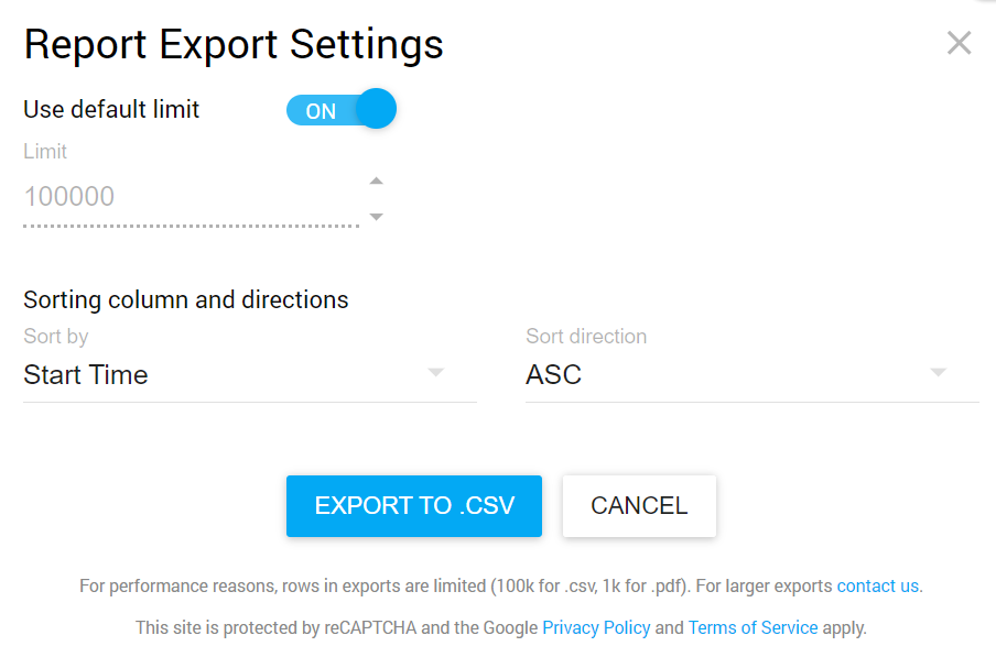 For the CSV option, the popup will provide you with the ability to limit the number of lines that will be exported, and select by which parameter will the extracted information be sorted as well as the direction of the sorting.