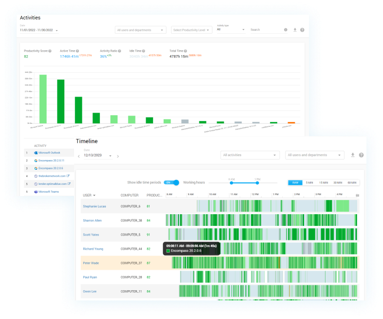 Use intuitive time charts to understand how employees were interacting with their computers over the last 60 minutes