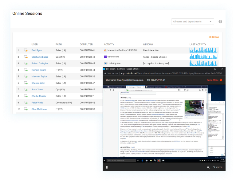 Optional - Access the live stream of employees’ screens to receive constant feedback on what they are actually doing at the moment